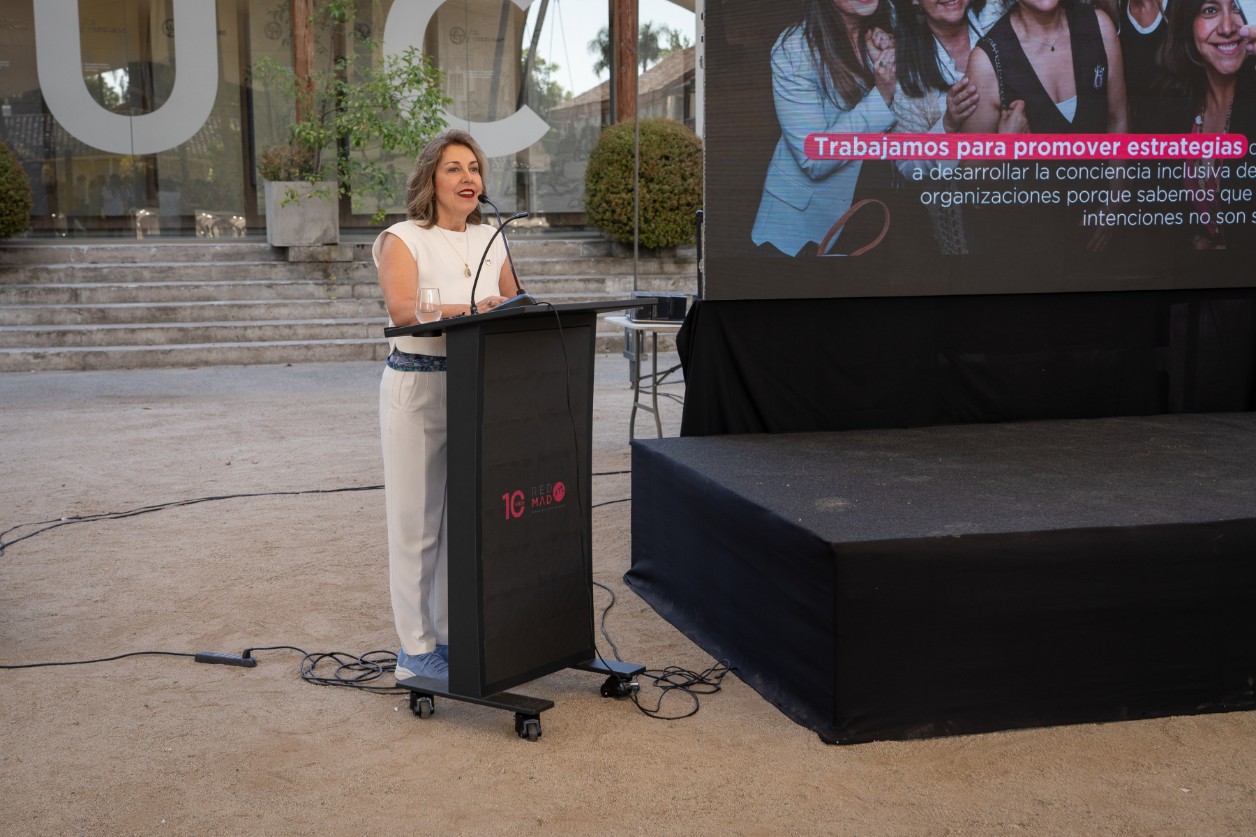 “En el contexto de nuestro país, las mujeres de REDMAD estamos llamadas a impulsar activamente los cambios de nuestra sociedad, para construir un país en el cual el desarrollo económico y la paz social vayan de la mano”, dijo María Isabel Aranda en su discurso.