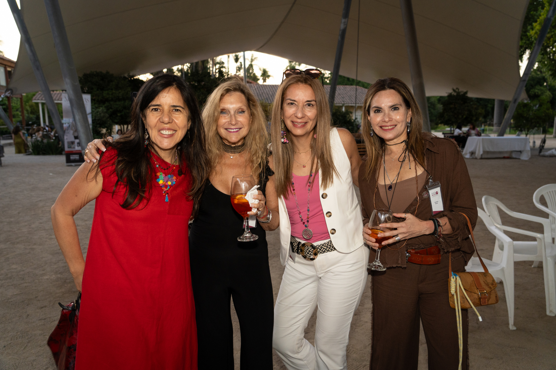 Al llegar, cada socia recibía un pin conmemorativo con el logo de REDMAD y, luego,ingresaba a un espacio rodeado por distintos stands de auspiciadores y aliados. Entre ellos destacaron una cabina de fotos, la revista “Nosotras”, la Municipalidad de Las Condes con su programa Red Mujer, Itelogic, un lugar para tomarse fotos antiguas que se imprimían en un pergamino –de Cabina Ideas–, la revista “Icónicas” –de Comunidad de Mujeres Emprendedoras, que prepara su cuarta edición–, y dos espacios de tarot.