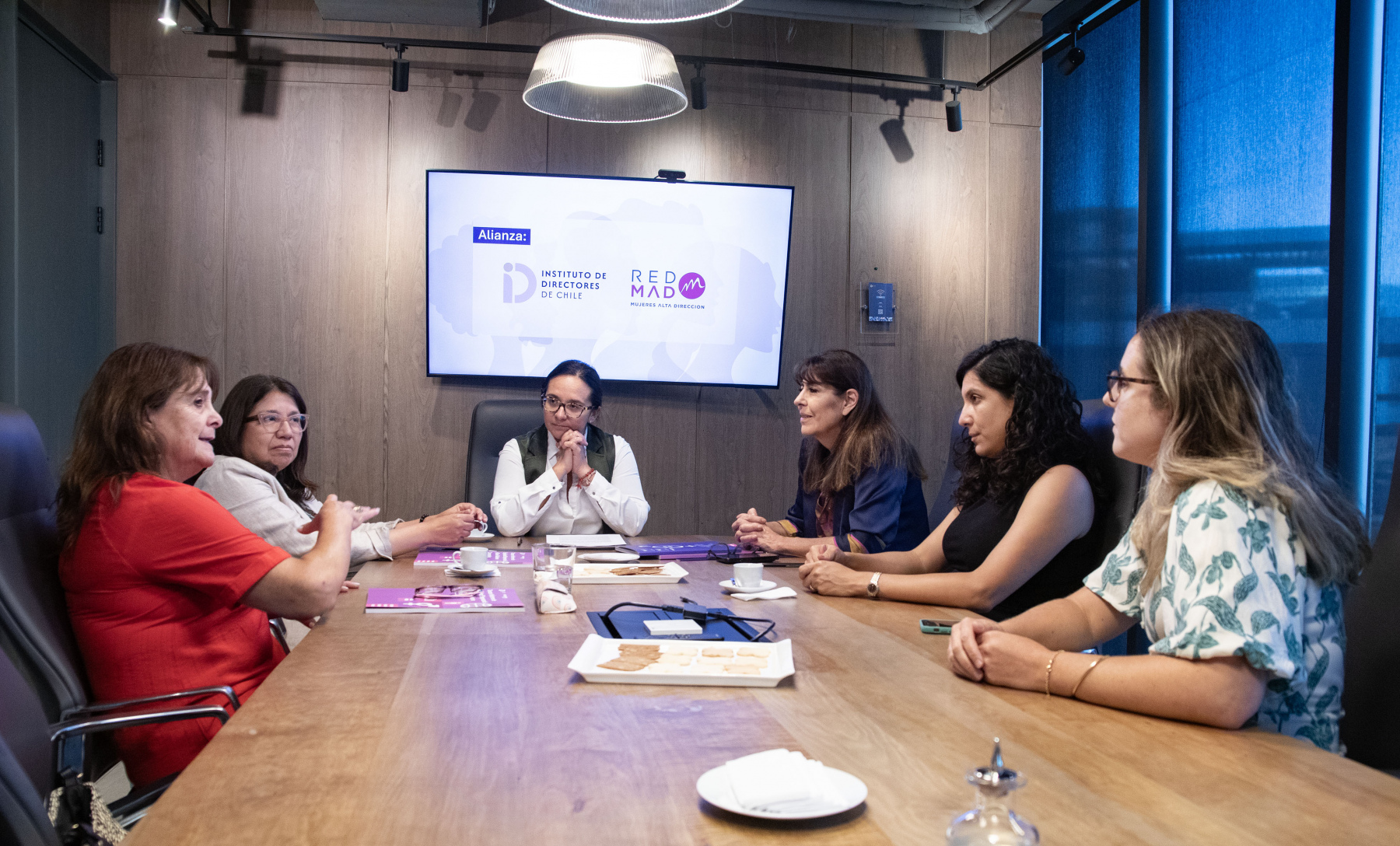 La firma del acuerdo contó con la participación de Fauda Gajardo, directora ejecutiva del Instituto de Directores, y María Ana Matthias, presidenta de REDMAD. También estuvieron presentes Marcela Contreras y Nelda Córdova, integrantes del Comité de Formación Corporativa de REDMAD, quienes acompañaron este importante hito para la organización.