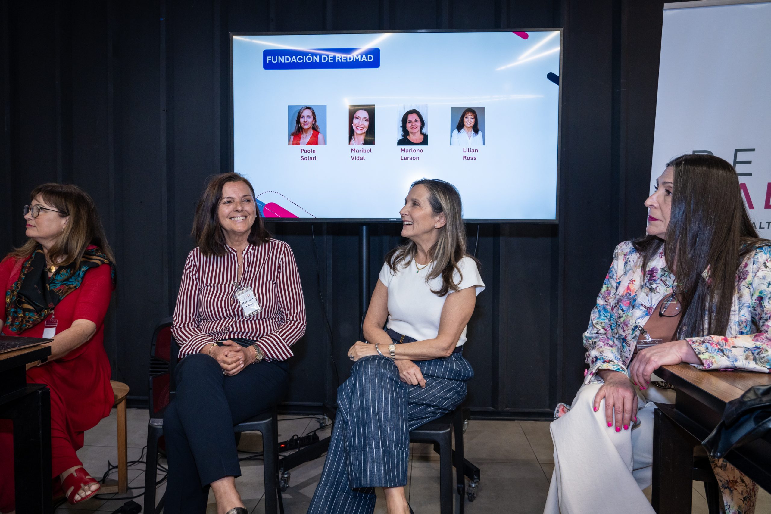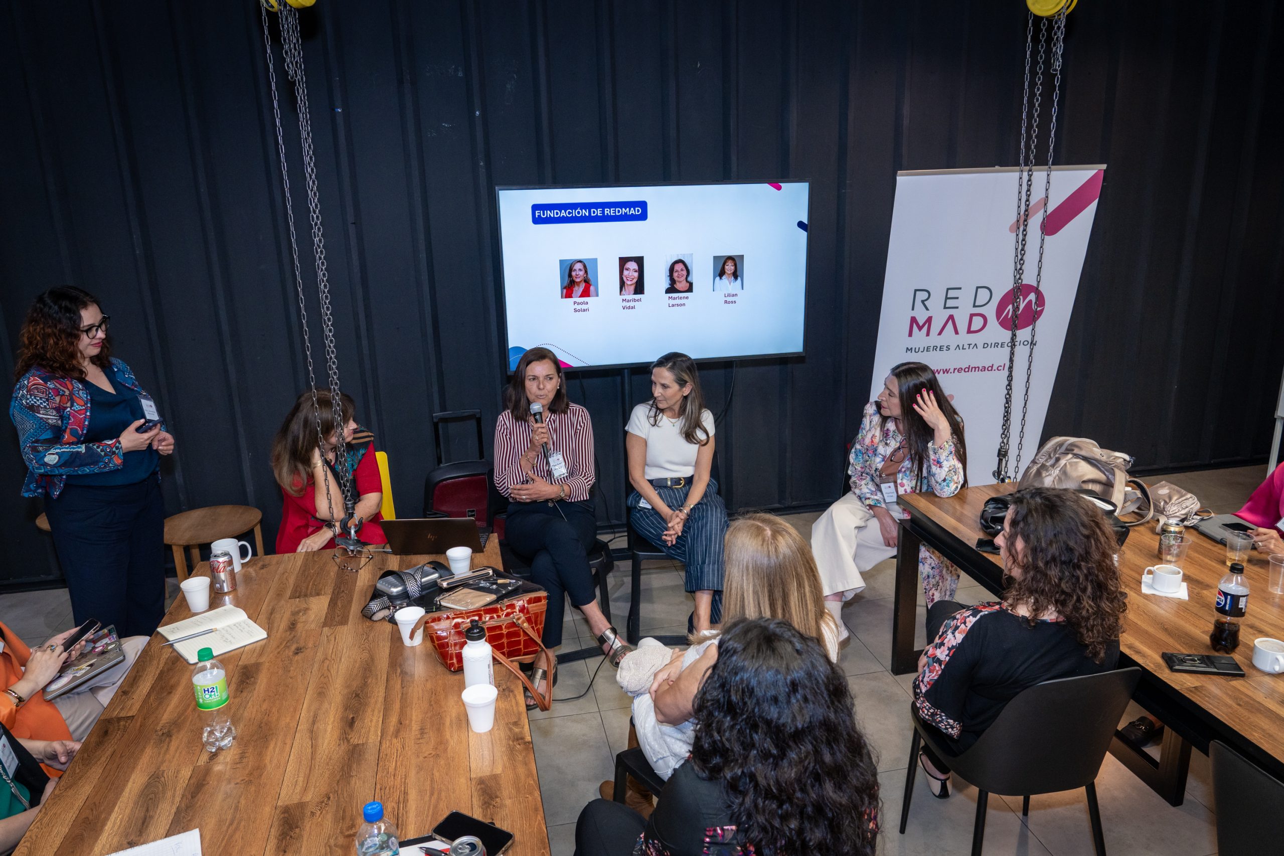 En la primera sesión, participaron las socias fundadoras Paola Solari, Marlene Larson, Lilian Ross y Maribel Vidal, quienes relataron la historia de cómo se formó REDMAD. En esta instancia, Maribel Vidal presentó la Misión, Visión, Propósito y Valores REDMAD, además del Manifiesto y los focos estratégicos que guían el quehacer de la red.